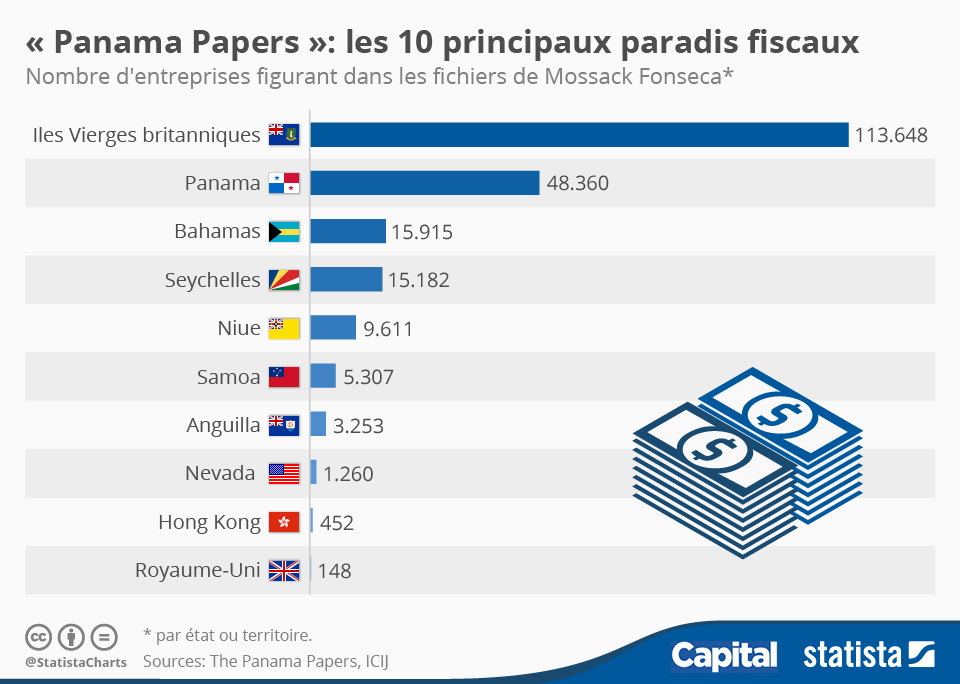 Les principaux paradis fiscaux vont des Iles vierges britanniques (n°1) au Royaume Uni (n°10) .