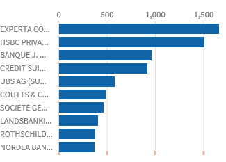& aussi le top 10 des établissements bancaires parmi les 500 établissements financiers impliqués avec le nombre d'entités offshores créées :