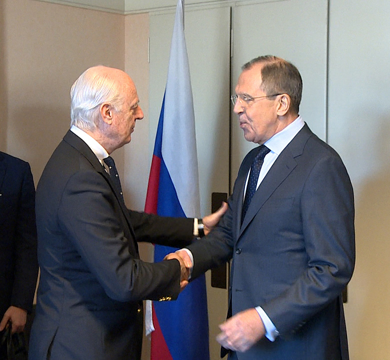 Le ministre russe des Affaires étrangères Sergueï Lavrov a reçu l'envoyé spécial des Nations unies pour la Syrie Staffan de Mistura .