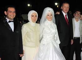 La famille Erdogan se compose du président ,son épouse Emine, deux fils, l'aîné Burak rare en public, Bilal, et deux filles, Esra et Sümeyye. Ahmet Davutoglu était le témoin de la fille du président, et le chef d'état-major des armées, le général Hulusi Akar, le témoin du marié.