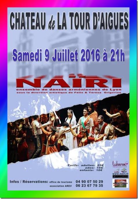 Samedi 9 Juillet 2016 à 21 heures , l'ensemble de danses NAÏRI va vous enchanter au Chateau de la Tour d'Entraigues , dans le magnifique Luberon .