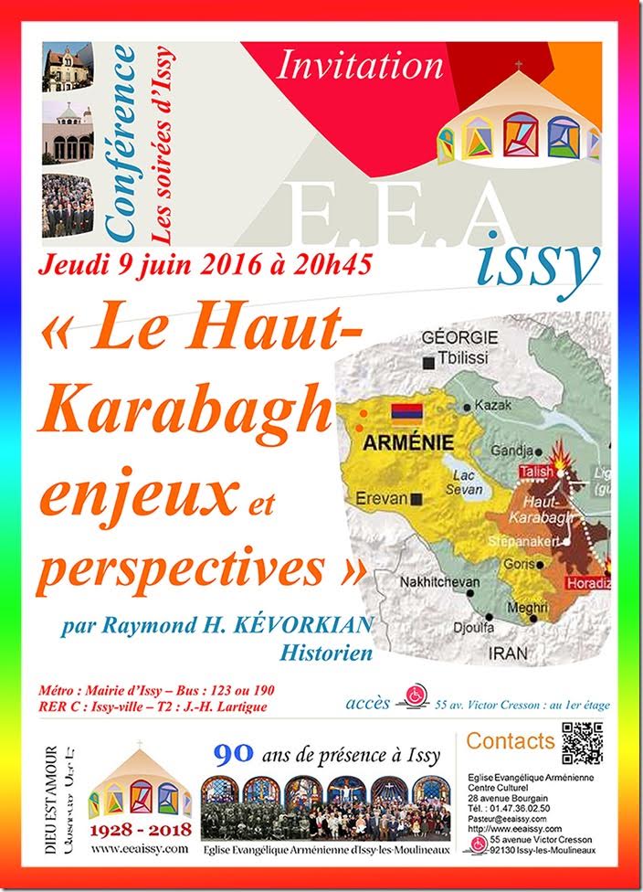 POLITIQUE Raymond H. Kévorkian présente : “le Haut-Karabagh : enjeux et perspectives” Jeudi 9 Juin 2016 à 20h45 Raffi June 2nd, 2016 armenieconférencecultureeuropefrançaisfrancegénocideHaroutiounHauthistorienissykarabaghkevorkianlesmoulineauxNagornyparisraymondrépubliquerusserussie L'historien Raymond H. Kevorkian présente : "Le Haut-Karabagh , enjeux et perspectives " , Jeudi 9 Juin 2016 à 20heures 45 à Issy Les Moulineaux (92130) 28 avenue Bourgain (accès handicapés 55 avenue Victor Cresson). 1er étage . Suivez-nous !