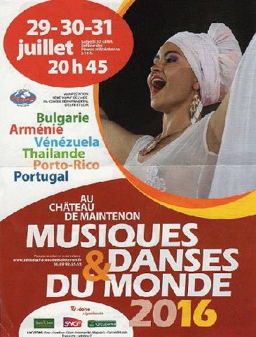 ARCHIVES Danses et Musiques au Château de Maintenon du 29 au 31 juillet 2016 Raffi July 8th, 2016 201620h452931àauchâteaudansesdedu mondeJuilletMaintenonmusiques Danses et Musiques du Monde au Chateau de Maintenon du 29 au 31 Juillet 2016 à 20 heurs 45 : Arménie , Bulgarie, Porto-Rico, Portugal, Vénézuela, Thaïlande Suivez-nous !