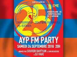 | AYP FM Party dans le cadre du 25e anniversaire de l'indépendance de l'Arménie animée par Souren Davtyan et son orchestre et DJ Vahé. |