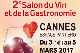 " 2ème Salon du Vin et de la Gastronomie de Cannes " aux espaces Pantiero le 3, 4, 5 Mars 2017.
