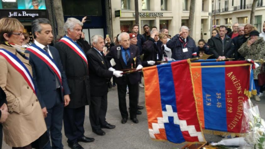 Les drapeaux de l'Artzakh 5Haut Karabagh) territoire arménien, et ceux des anciens combattants arméniens en France