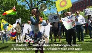 Une bagarre a éclaté lorsque les "agents de sécurité" de M. Erdogan ont attaqué des manifestants brandissant un drapeau du Parti de l'union démocratique (PYD) kurde syrien.