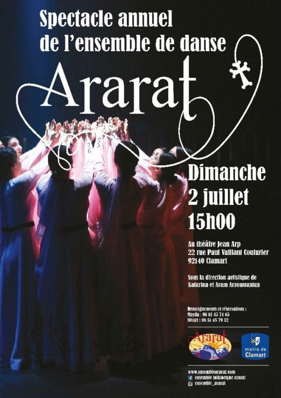 ARCHIVES Dimanche 2 Juillet 2017 à 15h à Clamart 92140 : Ararat danse pour vous Raffi June 28th, 2017 araratClamartcultureeuropefrançaisfranceparis Ararat danse Dimanche 2 Juillet 2017 à 15 heures à l'espace Jean Arp 22 ue Paul Vaillant Couturier 92140 Clamart avec le soutien de la Mairie de Clamart Suivez-nous !