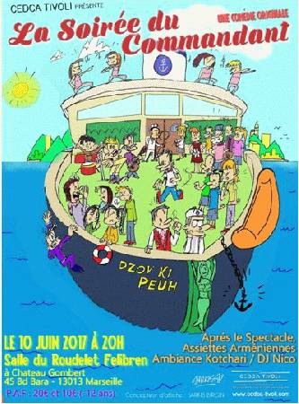 ARCHIVES “La Soirée du Commandant” le 10 Juin à Marseille Raffi June 8th, 2017 culturefrançaisfrancehistoire Après le succès de ses précédentes comédies musicales , Tivoli présente : " La Soirée du Commandant" à 20 heures Salle du Rondelet Felibren à Chateau Gombert 45 Bd Bara à 13013 Marseille Suivez-nous !