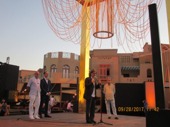 Le film avec des passages comiques, très bien accueilli, mais ça n'en a pas fait un gagnant. . Le film de fermeture du festival fut "Human Flow" d'Ai Weiwei sur l'origine et le destin des réfugiés qui, il y a deux semaines, avait fait sa première mondiale à Venise. Ici, j'ai également vu le film du libanais Ziad Doueiri «L'insulte» que j'ai loupé à Venise. L'histoire découle d'un simple dispute entre un chrétien libanais et un réfugié palestinien. L'acteur Kamel El Bascha a été récompensé par un Coppa Volpi pour la meilleure performance masculine..Dans le passé à Abu Dhabi cette fois, le magazine Variety a choisi El Gouna pour le meilleur talent arabe de l'année le 25.09 en la personne de Ziad Doueiri . Ziad a été arrêté à l'aéroport de Beyrouth, et son passeport confisqué à son retour de Venise . C'était un avertissement pour son précédent film en Israël.