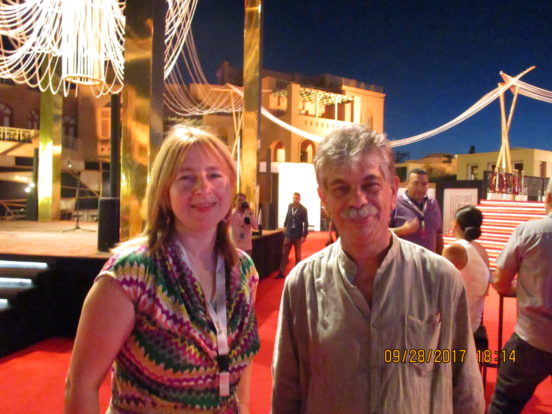 Comment El Gouna pourra éclipser à l'avenir, peut-être avec un Palais des Festivals comme à Cannes? Un centre de congrès manque vraiment, tout comme un centre de presse. En comparant avec des autres festivals, j'ai été impressionné par la diversité des films, parmi celles les deux dernières productions allemandes ont eu leur première dans la région MENA « Submersion », réalisé par Wim Wenders et la construction impressionnante / installation de Julian Rosefeldt « Manifesto » dans lequel Kate Blanchett récitant les manifestes plus importants incarne 12 rôles par exemple une femme sans-abri, une enseignante, ou une mère semblant de faire la priere à table avec sa famille (c'est la vraie famille de Kate Blanchett comme nous l'avons appris du DOP Christoph Krauss). Mais surtout la qualité des participants dans l'industrie m'a frappé. Les réunions et les conversations avec ces experts du monde entier invités à El Gouna ont créé un microcosme spécial dans cette station spectaculaire sur la Mer Rouge. Parmi eux le critique de cinéma de l'Irak établi en Suède Kais Kasim, le programmeur Raman Chawla de New Delphi, l'activiste Sarah Johnson de New York qui a également été la présidente du jury et qui finance avec sa maison de production « Green Hummingbird Entertainment » jeunes cinéastes et des films ayant un impact social. Je n'oublierai pas les conversations avec le cinéaste indien Mike Pandey, qui a participé comme Johnson le 25 Septembre au colloque « Etat de l'environnement: impact social à travers des films » et se consacre a la conservation des animaux sauvages en voie de disparition avec « Earth Matters www.earthmattersfoundation.org .