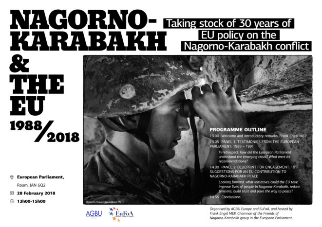 Join us on February 28th in the European Parliament (Room JAN 6Q2) from 13h00 to 15h00, where, building on the European Parliament’s institutional memory of the conflict and on the resolutions it adopted between 1988 and 1994, two panels of parliamentarians and other experts will critically assess the EU’s current policies on the conflict and discuss some suggestions on how to rebuild confidence and promote peace-building actions among the peoples of Armenia, Azerbaijan and Nagorno-Karabakh.
