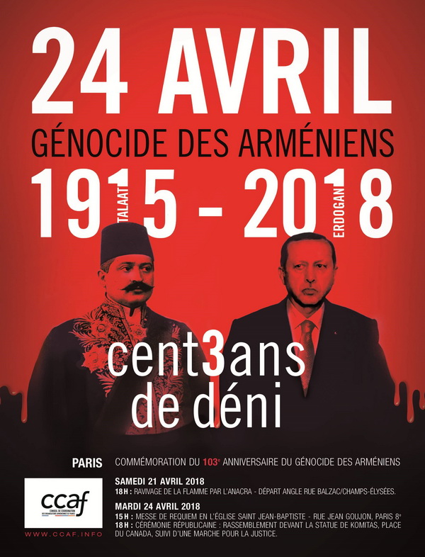à Courbevoie le 5 Mai 2018 : https://www.nouvelhay.com/2018/04/commemoration-du-103eme-anniversaire-du-genocide-des-armeniens-de-1915-ce-samedi-5-mai-2018-a-courbevoie/
