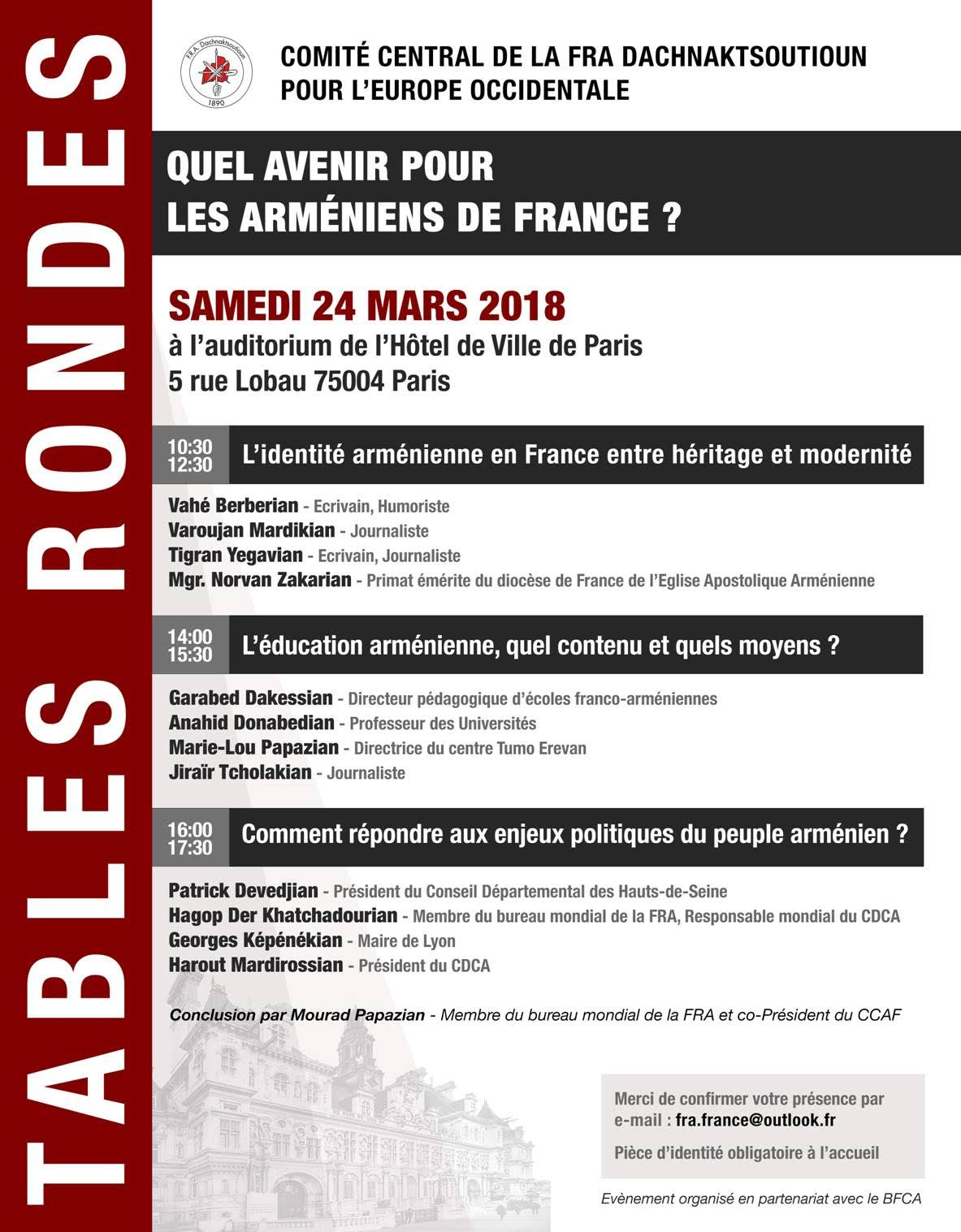 ARCHIVES A l’Hotel de Ville de Paris, Auditorium Raffi March 1st, 2018 armeniearménienarméniennearméniensauditoriumconférenceculturedeDevedjianeuropefrançaisfranceGrandHotVilleKépénékianle mondeparisPatrickrépublique samedi 24 Mars 2018 Tables Rondes Auditorium de l'Hotel de Ville de Paris 5 rue Lobau 75004 Paris Suivez-nous !