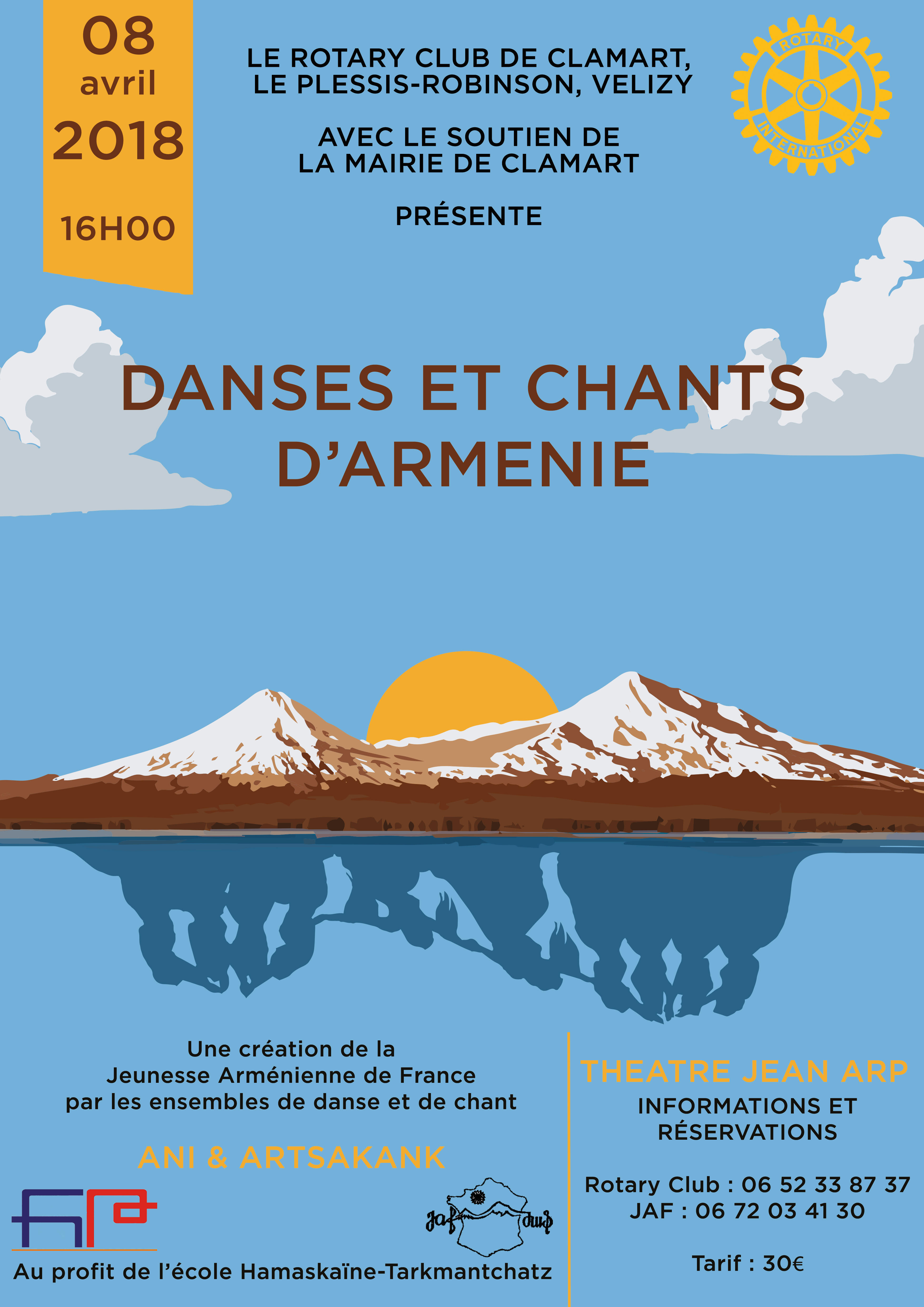 ARCHIVES Danses et Chants d’Arménie à Clamart le 8 avril avec le Rotary Club Raffi March 28th, 2018 20188artistes d'ArmenieAvrilchantsClamartclubd'Armeniedansesetrotary 8 avril 2018 : Danses et Chants d'Arménie à Clamart avec le Rotary Club de Clamart , Le Plessis-Robinson, Vélizy avec le soutien de la Mairie de Clamart Suivez-nous !
