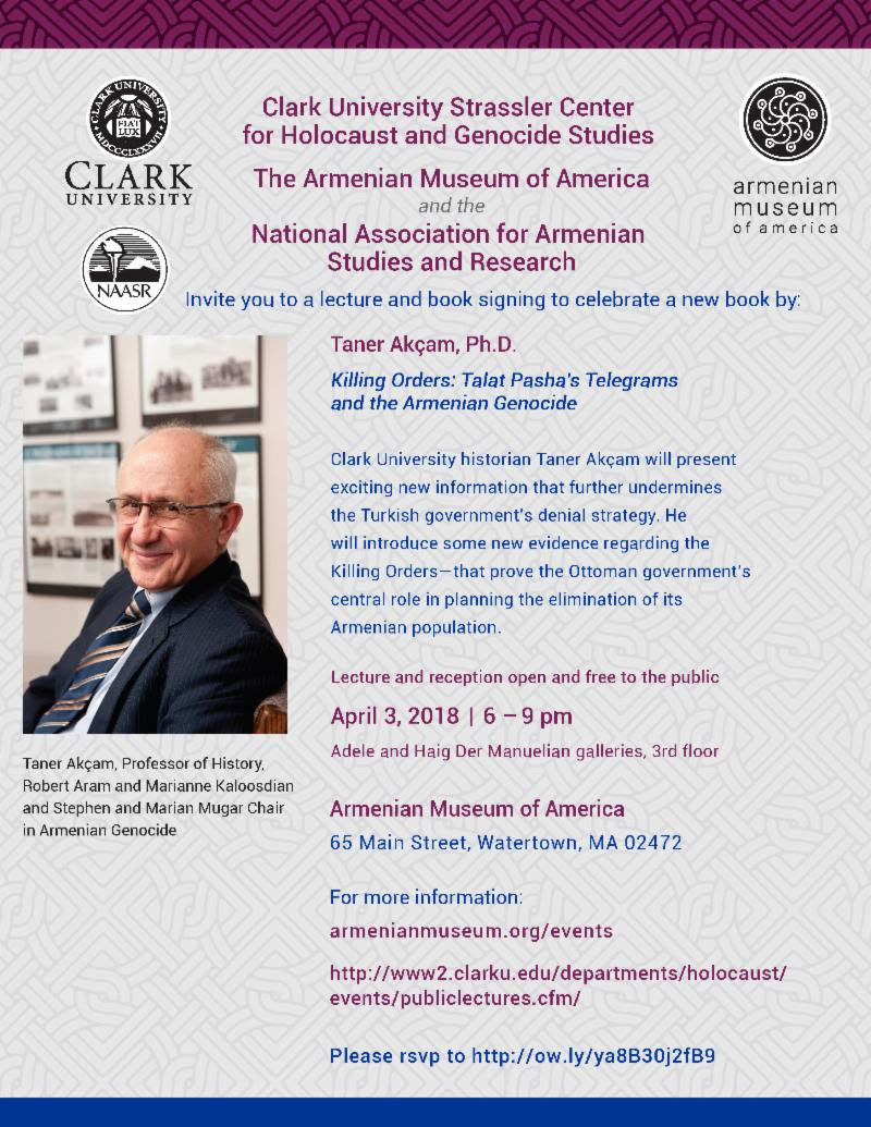 Clark University : ALMA : Taner Akçam présente : "les télégrammes de Talaat Pacha : ordres de massacrer" : le génocide des Arméniens par le gouvernement "Jeune Turc appué par "l'Organisation Spéciale" (Teshkilat y Mahsusa en turc) composée de criminels sortis de prison