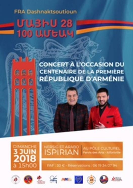 ARCHIVES Alfortville dimanche 3 juin 2018 : concert “pour ton 100ème, Arménie” Raffi June 1st, 2018 'Economieà 3 Alfortvillearmeniearménienarméniennecommémorationcultureerevanfestivalfrançaisfrancehistoirele mondespectacle Au pôle culturel d'Alfortville (94) les Ispirian (Armand et Nersig) chantent pour le centenaire de la 1ère république d'Arménie . dimanche 3 juin 2018 à 15 heures Suivez-nous !