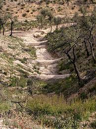 Restanques modernes en béton construites par l'ONF en travers d'un ravin dans l'Esterel.