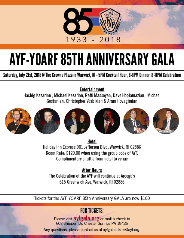 You are now able to purchase Dance Only tickets for the AYF-YOARF Anniversary Gala. Dance Only times will be from 8-11PM.
