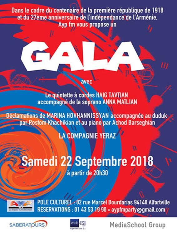 Un autre gala pour le 27ème anniversaire de la 2ème indépendance de l'Arménie , mais un jour après le 21 septembre (indépendance) , le samedi 22 septembre 2018 à partir de 20 heures 30
