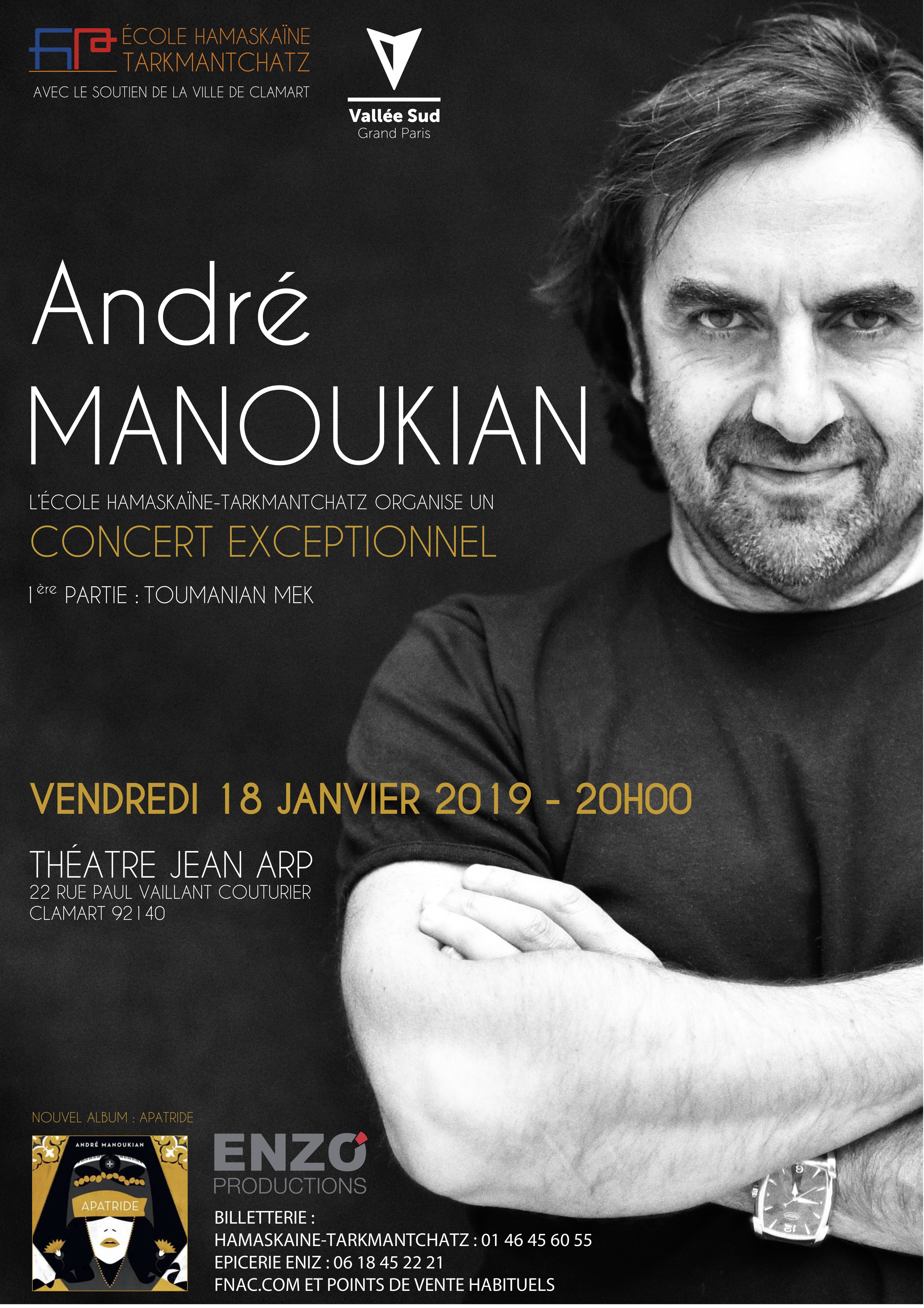 Né à Lyon de parents arméniens, André Manoukian se passionne pour le piano dès l'âge de 6 ans. D’abord étudiant en médecine, il part étudier la musique à Boston. En 1983, il découvre la chanteuse Liane Foly pour laquelle il crée les premiers succès (Au fur et à mesure, Doucement), puis collabore avec Charles Aznavour, Gilbert Bécaud, Diane Dufresne, Nicole Croisille, Natacha Atlas, Janet Jackson, Camille Bazbaz et Malia.