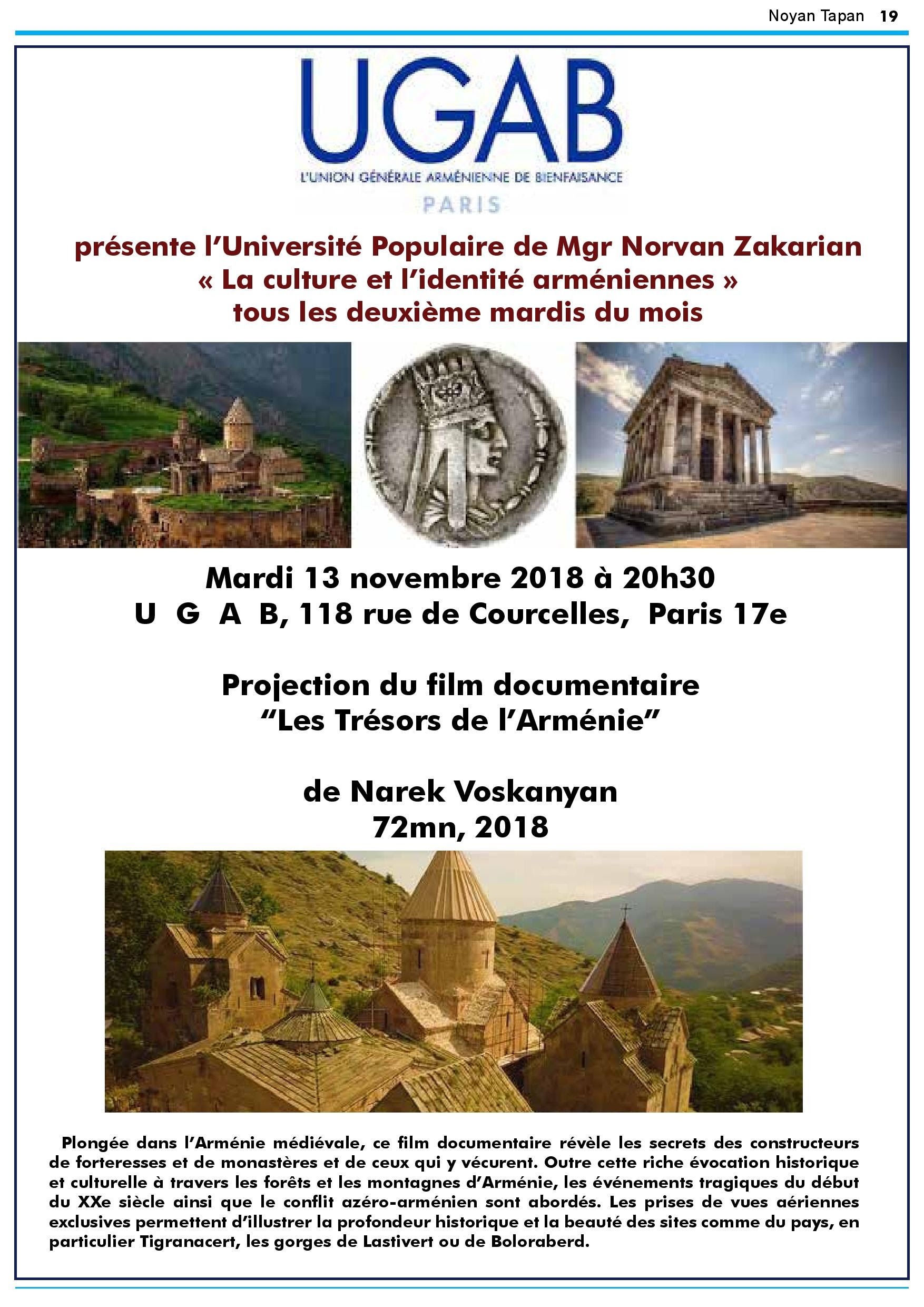 ARCHIVES Documentaire de 72 minutes ,le mardi 13 novembre 2018à 20h30 Raffi October 27th, 2018 118 rue de Courcelles 75017 Paris documentaire de 72 minutes : Les Trésors de l'Arménie projection Suivez-nous !