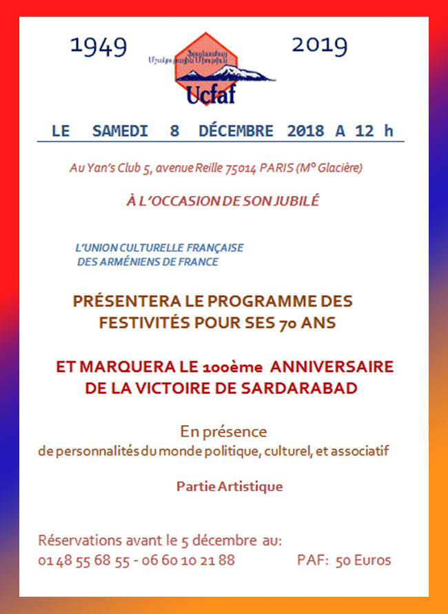 L'UCFAF fête son jubilé (70 ans) le samedi 8 décembre 2018 à 12h