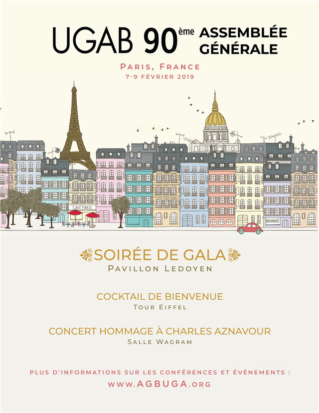 a 90ème Assemblée Générale de l’UGAB se tiendra à Paris du Jeudi 7 au Dimanche 10 février 2019. Vous pouvez retrouver le programme complet sur www.agbuga.org.