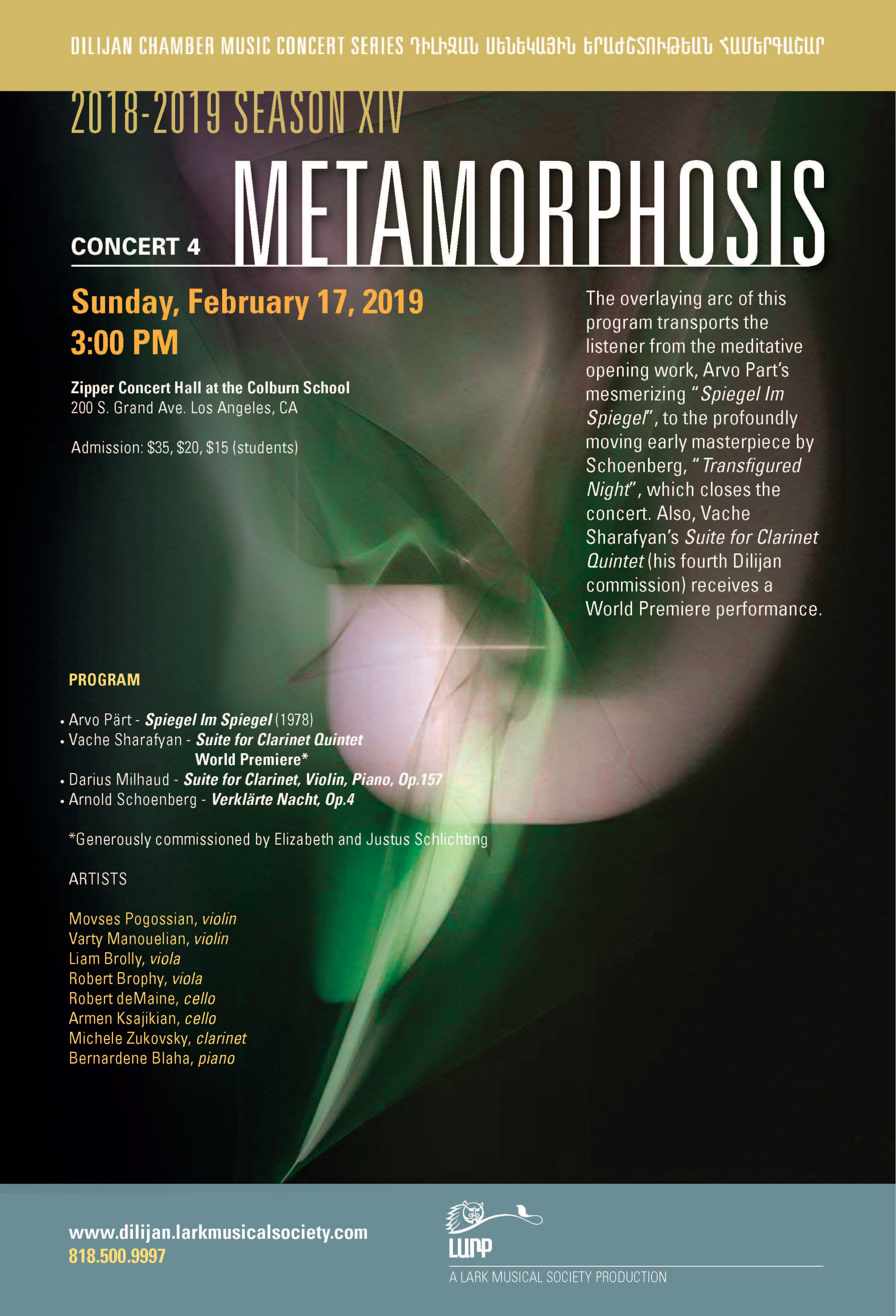 ARCHIVES Metamorphosis , sunday february 17 at 3pm Raffi February 5th, 2019 Zipper concert hall Colburn school Los Angeles, California USA Suivez-nous !