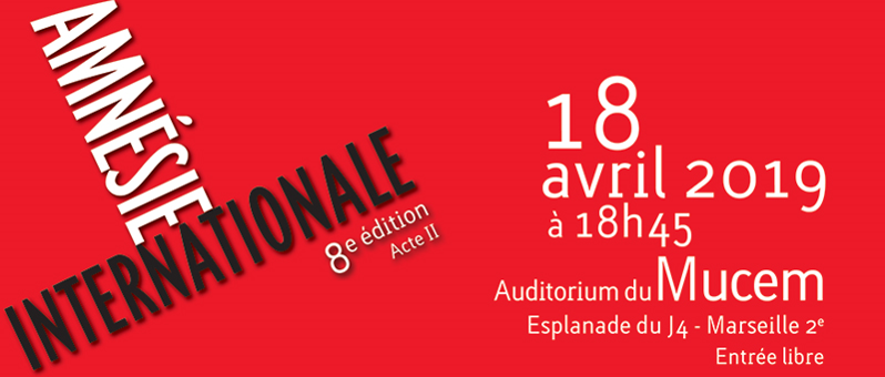 ARCHIVES Amnésie Internationale : 18 avril 2019 à Marseille (13) Raffi April 12th, 2019 Amnésie Internationale 18 avril 2019 à 18h45 au Mucem de Marseille Esplanade entrée libre Suivez-nous !