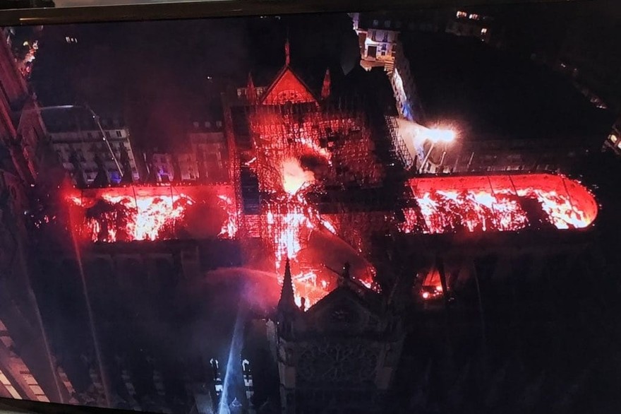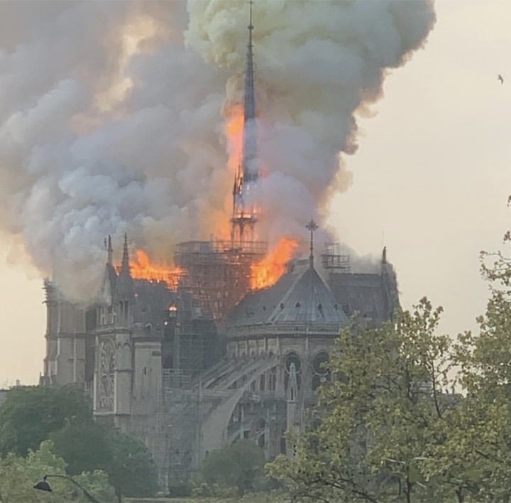 Toute la charpente est en train de bruler , une charpente qui date du 13ème siècle. L'incendie est en train de descendre sur la cathédrale.