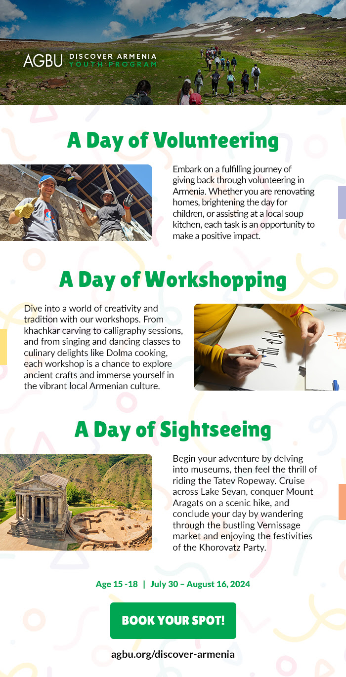 Lire la suite 200 millions de $ pour les réfugiés d’Artsakh (Haut Karabagh) & sanctions contre Aliyev : ANCAUn été 2024 : 30 juillet-16 août : avoir 15 à 18 ans en Arménie