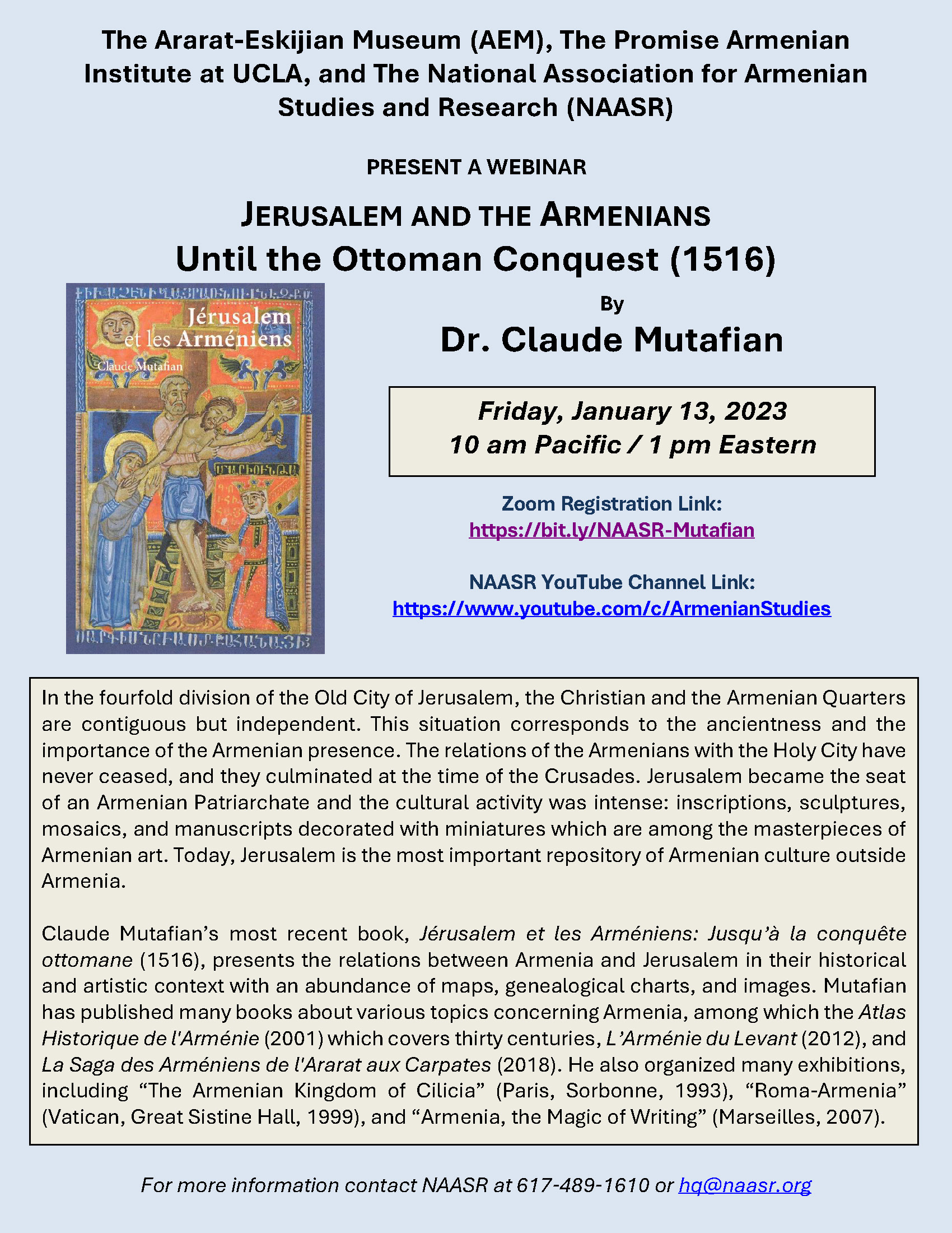 Vendredi 13 janvier 2023 Jerusalem & les Arméniens webinaire par Claude Mutafian ________________________________________________________________________ Photos de l'Arménie ottomane : Erzeroum, Van, …